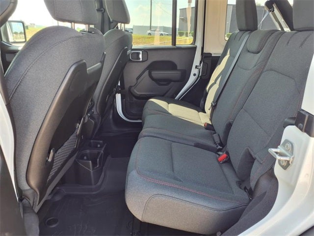 THIS VEHICLE COMES WITH THE FOLLOWING FEATURES AND OPTIONS : Convenience Group (Heated Front Seats, Heated Steering Wheel, and Universal Garage Door Opener), Quick Order Package 22R Rubicon, 4-Wheel Disc Brakes, 4.10 Rear Axle Ratio, 4G LTE Wi-Fi Hot Spot, 8 Speakers, 97 MPH Vehicle Max Speed Calibration, ABS brakes, Air Conditioning, Alloy wheels, AM/FM radio: SiriusXM, Apple CarPlay, Apple CarPlay/Android Auto, Automatic temperature control, Aux Battery, Auxiliary Switches, Body Color 3-Piece Hard Top, Brake assist, Class II Receiver Hitch, Cloth Low-Back Bucket Seats, Compass, Connectivity - US/Canada, Delay-off headlights, Driver door bin, Driver vanity mirror, Dual front impact airbags, Dual front side impact airbags, Electronic Stability Control, Emergency communication system: Jeep Connect, Freedom Panel Storage Bag, Front anti-roll bar, Front Bucket Seats, Front Center Armrest w/Storage, Front dual zone A/C, Front fog lights, Front License Plate Bracket (DISC), Front reading lights, Fully automatic headlights, Google Android Auto, Heated door mirrors, Illuminated entry, Integrated roll-over protection, Low tire pressure warning, MOPAR All-Weather Floor Mats, Non-Lock Fuel Cap w/o Discriminator, Occupant sensing airbag, Outside temperature display, Overhead airbag, Panic alarm, ParkView Rear Back-Up Camera, Passenger door bin, Passenger vanity mirror, Performance Suspension, Power door mirrors, Power steering, Power windows, Radio data system, Radio: Uconnect 5 w/12.3 Display, Rear anti-roll bar, Rear reading lights, Rear Window Defroster, Rear Window Wiper/Washer, Remote keyless entry, Security system, Speed control, Split folding rear seat, Steering wheel mounted audio controls, Stop-Start Dual Battery System, Tachometer, Telescoping steering wheel, Tilt steering wheel, Traction control, Trip computer, Variably intermittent wipers, Voltmeter, and Wheels: 17 x 7.5 Machined/Painted Black. Price includes: $1500 - 2025 National Bonus Cash . Exp. 02/02/2026 $2500 - 2025 National Retail Bonus Cash . Exp. 02/02/2026