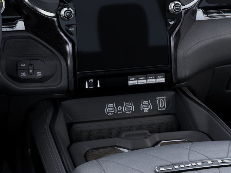THIS VEHICLE COMES WITH THE FOLLOWING FEATURES AND OPTIONS : Chrome Bumper Package (Bright Front Bumper and Bright Rear Bumper), Limited Level 1 Equipment Group (Active Lane Management System, Adaptive Steering System, CTR Stop Lamp w/Cargo View Camera, Digital Rearview Mirror, Drowsy Driver Detection, LED Bed Lighting, MOPAR Spray In Bedliner, Power Deployable Running Boards, Surround View Camera System, Traffic Sign Recognition, Trailer Reverse Guidance, and Trailer Tire Pressure Monitoring System), Max Tow Package (5th Wheel/Gooseneck Towing Prep Group and Auto Level Rear Air Suspension), Quick Order Package 24M Limited, 115V Auxiliary Rear Power Outlet, 17 Speakers, 2 Way Rear Headrest Seat, 4 Way Front Headrests, 4-Wheel Disc Brakes, 50 Gallon Fuel Tank, 6000# Front Axle w/Hub Ext, ABS brakes, Adjustable pedals, Air Conditioning, Alloy wheels, AM/FM radio: SiriusXM with 360L, Apple CarPlay/Android Auto, Audio memory, Auto High-beam Headlights, Auto-dimming door mirrors, Auto-dimming Rear-View mirror, Automatic temperature control, Black Wheel Center Hub, Bodyside moldings, Box & Rear Fender Clearance Lamps, Brake assist, Bucket Seats, Bumpers: body-color, Center Hub, Clearance Lamps, Compass, Dash Pass Thru Wire Circuits, Delay-off headlights, Driver door bin, Driver vanity mirror, Dual Alternators Rated at 480 Amps, Dual front impact airbags, Dual front side impact airbags, Dual Rear Wheels, Dual Wireless Charging Pad, Electronic Stability Control, Folding Flat Load Floor Storage, Front anti-roll bar, Front Bucket Seats, Front Center Armrest w/Storage, Front dual zone A/C, Front fog lights, Front License Plate Bracket, Front reading lights, Front Seat Back Map Pockets, Full Length Premium Upgraded Floor Console, Fully automatic headlights, Garage door transmitter, Genuine wood console insert, Genuine wood dashboard insert, Genuine wood door panel insert, harman/kardon® Speakers, Heated door mirrors, Heated Front Seats, Heated front seats, Heated rear seats, Heated Second Row Seats, Heated Steering Wheel, Heated steering wheel, High Back Seats, I/P Mounted Auxiliary Switches, Illuminated entry, Leather steering wheel, Low tire pressure warning, Memory seat, Navigation System, Occupant sensing airbag, Outside temperature display, Overhead airbag, Overhead console, Panic alarm, ParkView Rear Back-Up Camera, Passenger door bin, Passenger vanity mirror, Pedal memory, Power 2-Way Driver Lumbar Adjust, Power 2-Way Passenger Lumbar Adjust, Power Adjust 8-Way Driver Seat, Power Adjust 8-Way Front Passenger Seat, Power door mirrors, Power driver seat, Power passenger seat, Power steering, Power Sunroof, Power windows, Radio data system, Radio: Uconnect 5 Nav w/14.4 Display, Radio/Driver Seat/Mirrors/Pedals Memory, Rain sensing wipers, Rear 60/40 Folding Seat, Rear reading lights, Rear seat center armrest, Rear step bumper, Rear window defroster, Remote keyless entry, Security system, Speed control, Split folding rear seat, Steering wheel mounted audio controls, Tachometer, Tilt steering wheel, Traction control, Trip computer, Turn signal indicator mirrors, Ultra Premium Leather Seats, Variably intermittent wipers, Ventilated Front Seats, Ventilated front seats, Voltmeter, Wheels: 17 x 6.0 Polished Aluminum, and Wheels: 20 x 8.0 Diam Cut Alum w/Blk Pt Pock. Price includes: $4000 - 2025 National Bonus Cash . Exp. 03/31/2026
