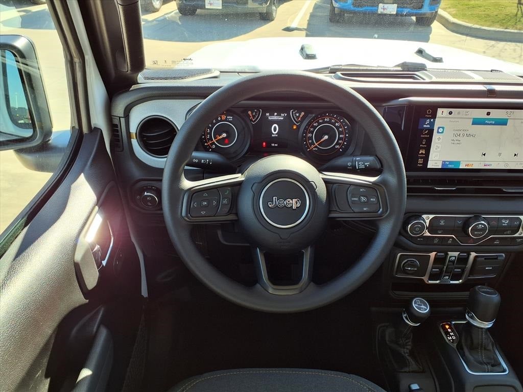 THIS VEHICLE COMES WITH THE FOLLOWING FEATURES AND OPTIONS : Quick Order Package 24B Sport, 110 Mph Vehicle Max Speed Calibration, 12.3 Touchscreen Display, 3.73 Rear Axle Ratio, 4-Wheel Disc Brakes, 4G LTE Wi-Fi Hot Spot, 8 Speakers, ABS brakes, Air Conditioning, Alexa Built-in, AM/FM radio: SiriusXM with 360L, Apple CarPlay, Apple CarPlay/Android Auto, Black 3-Piece Hard Top, Brake assist, Compass, Connectivity - US/Canada, Delay-off headlights, Driver door bin, Driver vanity mirror, Dual front impact airbags, Dual front side impact airbags, Electronic Stability Control, Freedom Panel Storage Bag, Front anti-roll bar, Front Bucket Seats, Front Center Armrest w/Storage, Front fog lights, Front License Plate Bracket, Front reading lights, Google Android Auto, Illuminated entry, Integrated roll-over protection, Low tire pressure warning, Manufacturer's Statement of Origin, MOPAR All-Weather Slush Mats, MyFlexCare Service Plan, Normal Duty Suspension, Occupant sensing airbag, Outside temperature display, Overhead airbag, Panic alarm, ParkView Rear Back-Up Camera, Passenger door bin, Passenger vanity mirror, Power steering, Power windows, Radio data system, Radio: Uconnect 5 with 12.3 Display, Rear anti-roll bar, Rear reading lights, Rear Sliding Window, Rear Window Defroster, Remote keyless entry, Speed control, Split folding rear seat, Steering wheel mounted audio controls, Tachometer, Telescoping steering wheel, Tilt steering wheel, Traction control, Trip computer, USB Host Flip, Variably intermittent wipers, Voltmeter, and Wheels: 17 x 7.5 Black Steel Styled.