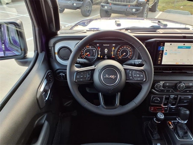 THIS VEHICLE COMES WITH THE FOLLOWING FEATURES AND OPTIONS : Quick Order Package 24W Willys (2-Piece Body Color Fender Flares, 4-Wheel Drive Decal, Advanced Brake Assist, Air Conditioning with Auto Temp Control, Automatic Headlamps, Auxiliary Switches, Black Grille with Gloss Black Rings, Class IV Receiver Hitch, Cluster 7.0 TFT Color Display, Corning Gorilla Glass, Daytime Running Lamps LED Accents, Deep Tint Sunscreen Windows, E-Locker Rear Axle, Front Door Locks 2-Door Passive Entry, Front Heavy Duty Red Accent Shock Absorbers, Front LED Fog Lamps, Full Speed Forward Collision Warning Plus, Heavy-Duty Engine Cooling, LED Premium Reflector Headlamps, LED Taillamps, Mold in Color Bumper with Gloss Black, MOPAR All-Weather Slush Mats, Off-Road Plus Mode, Power Heated Mirrors, Premium Wrapped Steering Wheel, Protection Sill Rails, Rear Heavy Duty Red Accent Shock Absorbers, Security Alarm, Sun Visors with Illuminated Vanity Mirrors, Trailer Hitch Zoom, Wheels: 17 x 7.5 Painted Black, Willys Hood Decal, and Willys Suspension), 110 Mph Vehicle Max Speed Calibration, 12.3 Touchscreen Display, 3.73 Rear Axle Ratio, 4-Wheel Disc Brakes, 4G LTE Wi-Fi Hot Spot, 8 Speakers, ABS brakes, Air Conditioning, Alexa Built-in, Alpine Premium Audio System, AM/FM radio: SiriusXM with 360L, Apple CarPlay, Apple CarPlay/Android Auto, Black 3-Piece Hard Top, Brake assist, Compass, Connectivity - US/Canada, Delay-off headlights, Driver door bin, Driver vanity mirror, Dual front impact airbags, Dual front side impact airbags, Electronic Stability Control, Freedom Panel Storage Bag, Front anti-roll bar, Front Bucket Seats, Front Center Armrest w/Storage, Front fog lights, Front License Plate Bracket, Front reading lights, Google Android Auto, Illuminated entry, Integrated roll-over protection, Low tire pressure warning, Manufacturer's Statement of Origin, MOPAR Hardtop Headliner, MOPAR Spray in Bedliner, MyFlexCare Service Plan, Normal Duty Suspension, Occupant sensing airbag, Outside temperature display, Overhead airbag, Panic alarm, ParkView Rear Back-Up Camera, Passenger door bin, Passenger vanity mirror, Power steering, Power windows, Radio data system, Radio: Uconnect 5 with 12.3 Display, Rear anti-roll bar, Rear reading lights, Rear Sliding Window, Rear Window Defroster, Remote keyless entry, Speed control, Split folding rear seat, Steering wheel mounted audio controls, Tachometer, Telescoping steering wheel, Tilt steering wheel, Traction control, Trip computer, USB Host Flip, Variably intermittent wipers, Voltmeter, and Wheels: 17 x 7.5 Black Steel Styled.