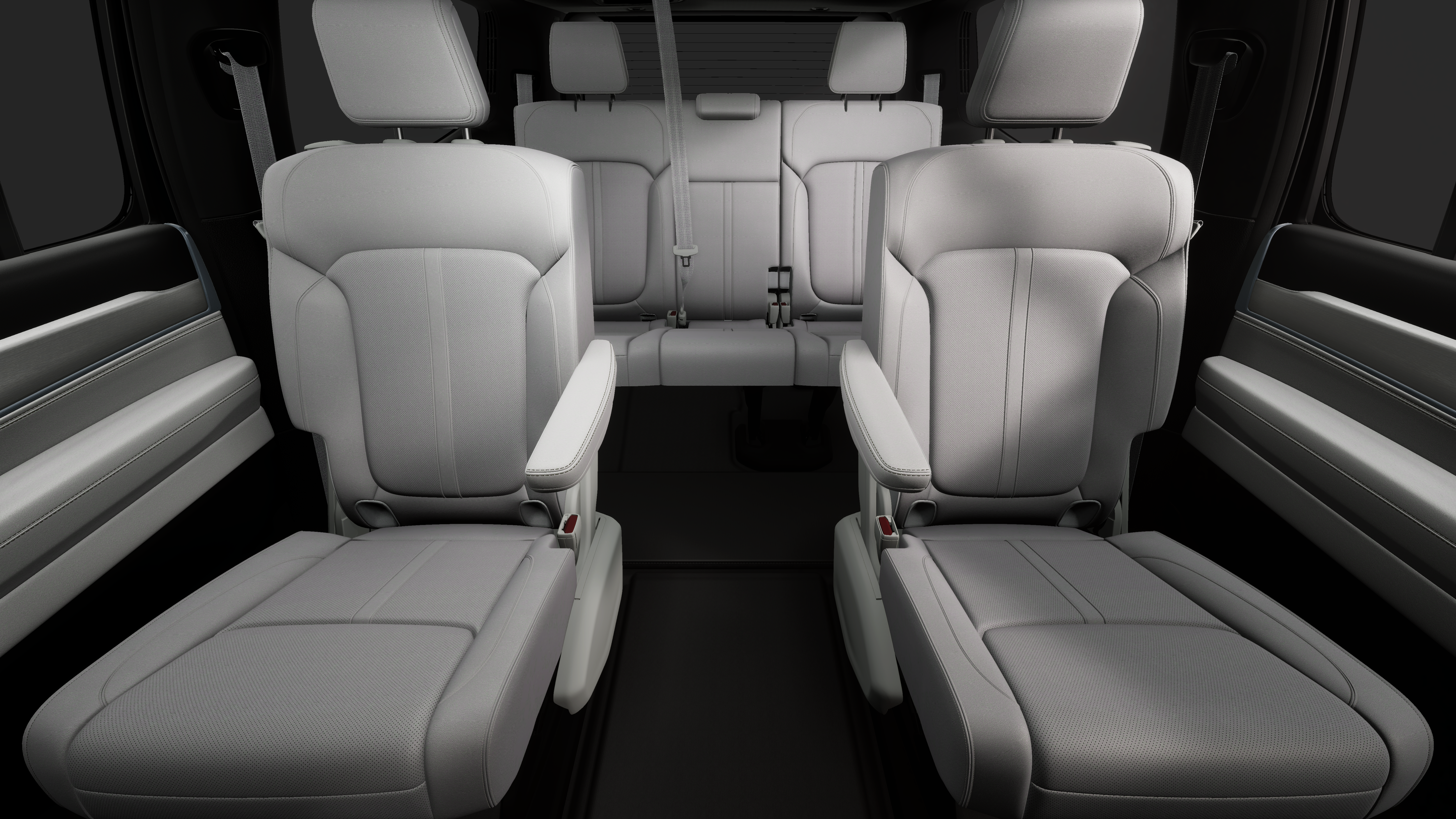 • Fixed 60-40 Bench Leather 3rd Row Seat Front, Manual Recline, 3 Power and Adjustable Head Restraints