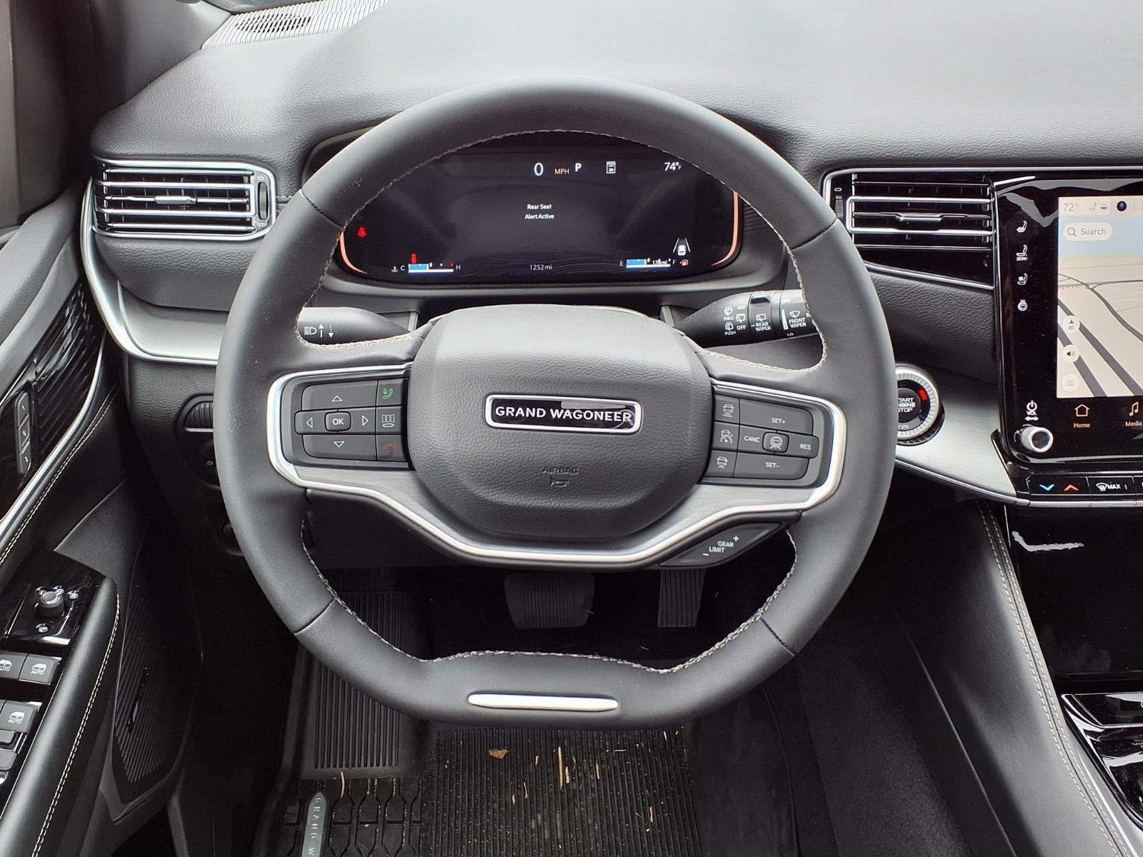 THIS VEHICLE COMES WITH THE FOLLOWING FEATURES AND OPTIONS : HD Trailer Tow Package (118 Mph Maximum Speed Calibration, Adjustable Roof Rail Crossbars, Blind Spot with Trailer Detection, Electronic Rear Limited Slip Differential, Removable Rear Tow Hooks, Selec-Speed Control, Trailer Brake Control, Trailer Hitch Zoom, Trailer Light Monitoring, Vapor Tow Hooks, and Wheels: 20 x 9 Machine Face Painted Aluminum), MOPAR Interior Protection Package (All-Season Floor Mats and Cargo Tray), Premium Group I (3 Panel Sunroof, 3rd Row 60/40 Power Recline Seat, Auto Adjust in Reverse Exterior Mirrors, Auto Power Folding Exterior Mirrors, Auto Power Folding Mirrors, Auto-Dimming Exterior Driver Mirror, Cargo Cover, Exterior Mirrors Approach Lamps, Exterior Mirrors with Memory, Exterior Mirrors with Supplemental Signals, Heated Exterior Mirrors, Interior Rear Facing Camera, Luxury Front and Rear Floor Mats, P and P Park and Unpark Assist with Stop System, Reversible Carpet/Vinyl Cargo Mat, Side Distance Warning, and Surround View Camera System), Quick Order Package 29E Grand Wagoneer, 3rd row seats: bench, 4-Wheel Disc Brakes, 9 Speakers, ABS brakes, Air Conditioning, Alloy wheels, AM/FM radio: SiriusXM with 360L, Anti-whiplash front head restraints, Apple CarPlay/Android Auto, Audio memory, Auto High-beam Headlights, Auto-dimming door mirrors, Auto-dimming Rear-View mirror, Auto-leveling suspension, Automatic temperature control, Brake assist, Bumpers: body-color, Compass, Delay-off headlights, Driver door bin, Driver vanity mirror, Driver's Seat Mounted Armrest, Dual front impact airbags, Dual front side impact airbags, Electronic Stability Control, Emergency communication system: Jeep Connect, Exterior Parking Camera Rear, Four wheel independent suspension, Front anti-roll bar, Front Bucket Seats, Front Center Armrest w/Storage, Front dual zone A/C, Front fog lights, Front reading lights, Fully automatic headlights, Garage door transmitter, Heated door mirrors, Heated front seats, Heated steering wheel, Illuminated entry, Knee airbag, Leather Trimmed Bucket Seats, Low tire pressure warning, Manufacturer Statement of Origin, Memory seat, MyFlexCare Service Plan, Navigation System, Normal Duty Suspension, Occupant sensing airbag, Outside temperature display, Overhead airbag, Overhead console, Panic alarm, Passenger door bin, Passenger seat mounted armrest, Passenger vanity mirror, Power door mirrors, Power driver seat, Power Liftgate, Power passenger seat, Power steering, Power windows, Radio data system, Radio: Uconnect 5 Nav with 12.0 Display, Rain sensing wipers, Rear air conditioning, Rear anti-roll bar, Rear reading lights, Rear seat center armrest, Rear window defroster, Rear window wiper, Reclining 3rd row seat, Remote keyless entry, Security system, Speed control, Speed-sensing steering, Speed-Sensitive Wipers, Split folding rear seat, Steering wheel memory, Steering wheel mounted audio controls, Tachometer, Telescoping steering wheel, Tilt steering wheel, Traction control, Trip computer, Turn signal indicator mirrors, Variably intermittent wipers, Ventilated front seats, and Voltmeter.