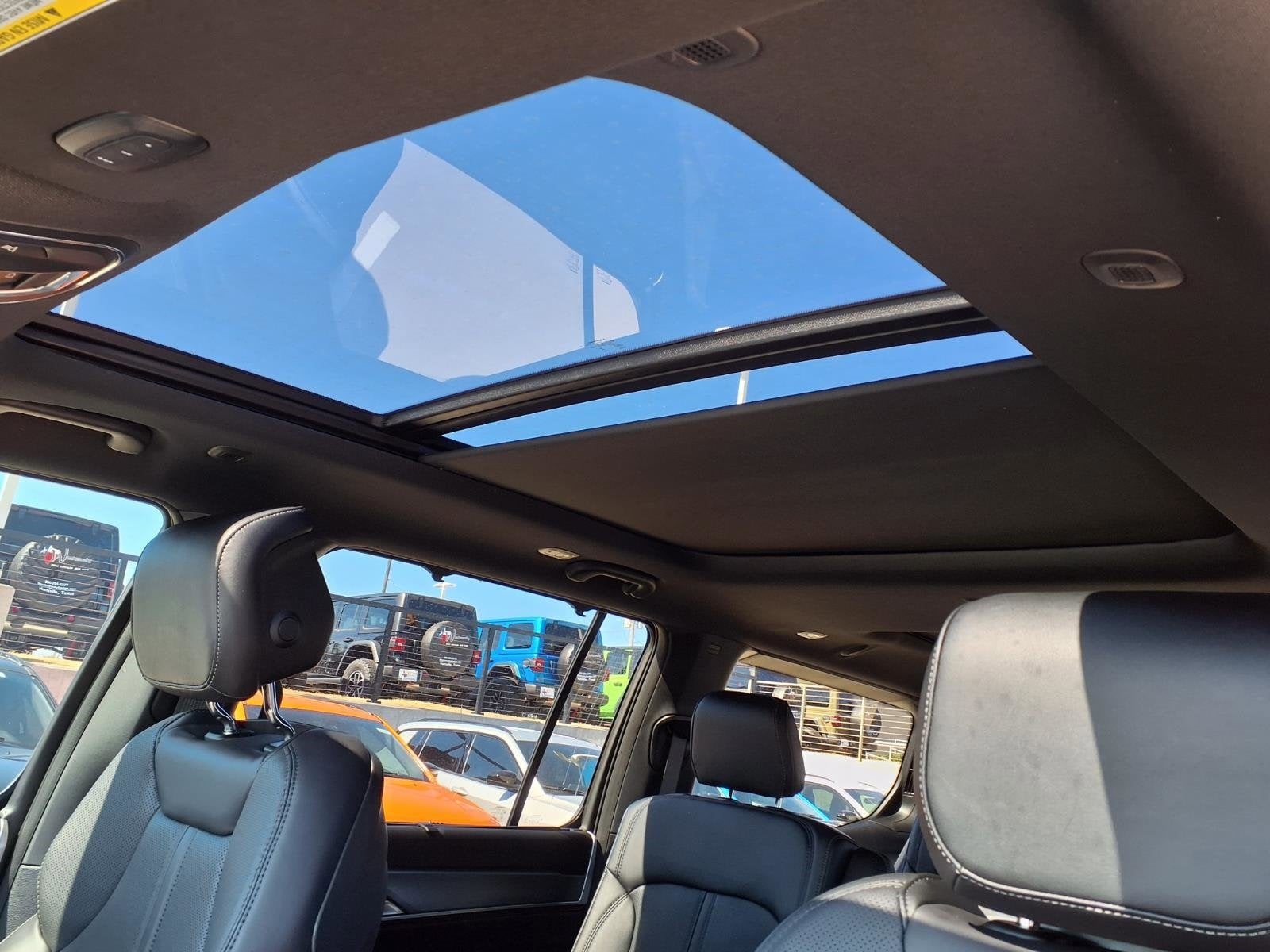 THIS VEHICLE COMES WITH THE FOLLOWING FEATURES AND OPTIONS : Black Appearance Package (118 Mph Maximum Speed Calibration, Black Exterior Accents, Titanium Daylight Opening Upper, Titanium Upper Grille Applique, and Wheels: 22 x 9 Painted Gloss Black), Limited Reserve Package, Quick Order Package 29D Reserve (19 Speaker McIntosh Audio System, 2nd Row Manual Window Shades, 3 Panel Sunroof, Cargo Cover, Cluster 12 TFT Color Display, Heads-Up Display, Instrument Panel, Interior Rear Facing Camera, Luxury Front and Rear Floor Mats, P and P Park and Unpark Assist with Stop System, Power Deployable Running Boards, Quadra-Lift Air Suspension, Reversible Carpet/Vinyl Cargo Mat, Semi Active Damping, Side Distance Warning, Smartphone as a Key Prep, and Surround View Camera System), 3.55 Rear Axle Ratio, 3rd row seats: bench, 4-Wheel Disc Brakes, 9 Speakers, ABS brakes, Air Conditioning, Alloy wheels, AM/FM radio: SiriusXM with 360L, Anti-whiplash front head restraints, Apple CarPlay/Android Auto, Audio memory, Auto Adjust in Reverse Exterior Mirrors, Auto High-beam Headlights, Auto-dimming door mirrors, Auto-Dimming Exterior Driver Mirror, Auto-dimming Rear-View mirror, Auto-leveling suspension, Automatic temperature control, Brake assist, Bumpers: body-color, Compass, Delay-off headlights, Driver door bin, Driver vanity mirror, Driver's Seat Mounted Armrest, Dual front impact airbags, Dual front side impact airbags, Electronic Stability Control, Emergency communication system: Jeep Connect, Exterior Mirrors Approach Lamps, Exterior Mirrors with Memory, Exterior Mirrors with Supplemental Signals, Exterior Parking Camera Rear, Four wheel independent suspension, Front anti-roll bar, Front Bucket Seats, Front Center Armrest w/Storage, Front dual zone A/C, Front fog lights, Front reading lights, Fully automatic headlights, Garage door transmitter, Heated door mirrors, Heated Exterior Mirrors, Heated front seats, Heated rear seats, Heated steering wheel, Illuminated entry, Knee airbag, Leather Trimmed Bucket Seats, Low tire pressure warning, Memory seat, MyFlexCare Service Plan, Navigation System, Normal Duty Suspension, Occupant sensing airbag, Outside temperature display, Overhead airbag, Overhead console, Panic alarm, Passenger door bin, Passenger seat mounted armrest, Passenger vanity mirror, Power door mirrors, Power driver seat, Power Liftgate, Power passenger seat, Power steering, Power windows, Radio data system, Radio: Uconnect 5 Nav with 12.0 Display, Rain sensing wipers, Rear air conditioning, Rear anti-roll bar, Rear reading lights, Rear seat center armrest, Rear window defroster, Rear window wiper, Reclining 3rd row seat, Remote keyless entry, Security system, Speed control, Speed-sensing steering, Speed-Sensitive Wipers, Split folding rear seat, Steering wheel memory, Steering wheel mounted audio controls, Tachometer, Telescoping steering wheel, Tilt steering wheel, Traction control, Trip computer, Turn signal indicator mirrors, Variably intermittent wipers, Ventilated front seats, Ventilated rear seats, and Voltmeter.