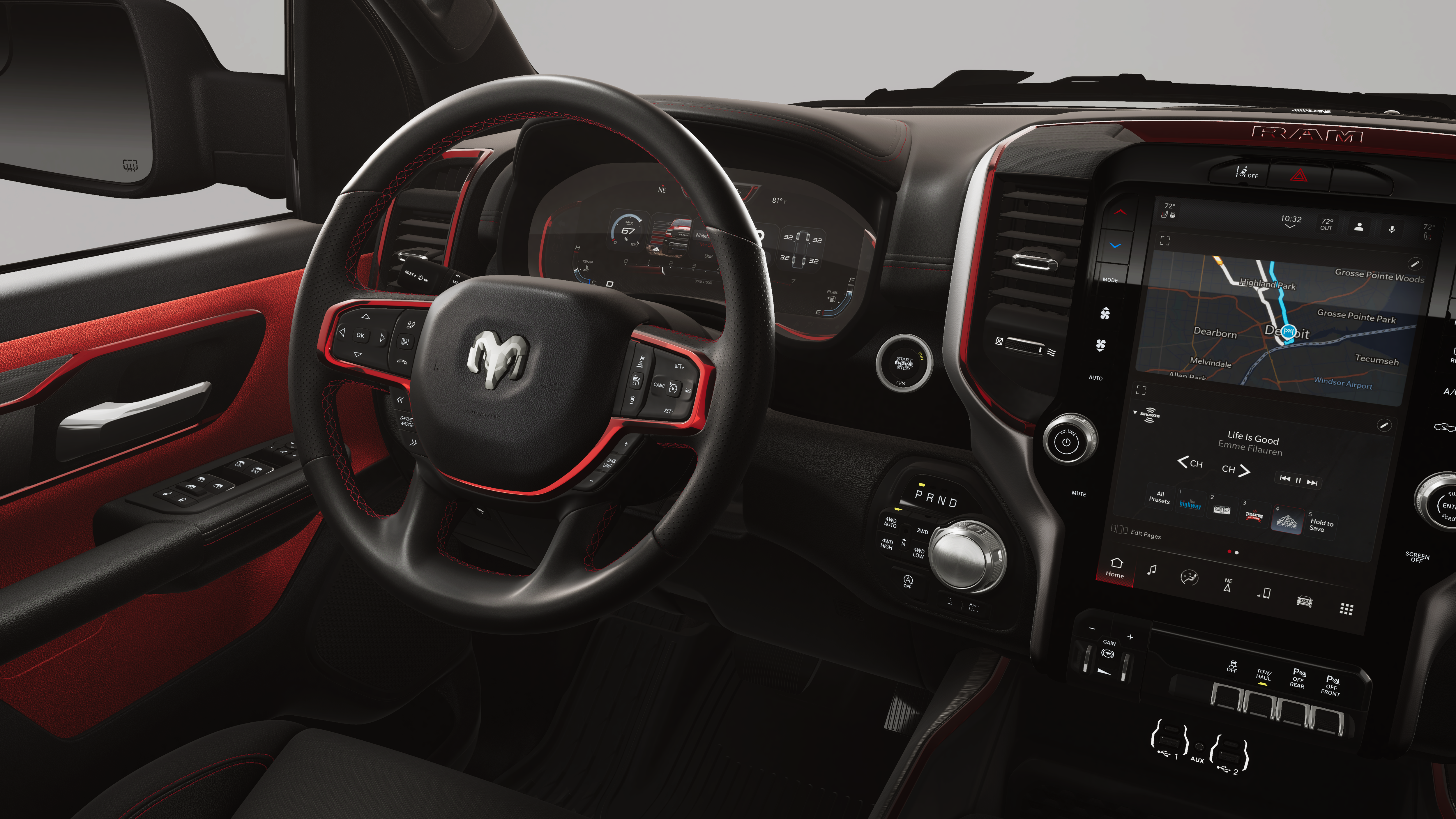 - 4-Wheel Disc Brakes w/4-Wheel ABS, Front Vented Discs, Brake Assist, Hill Descent Control, Hill Hold Control and Electric Parking Brake