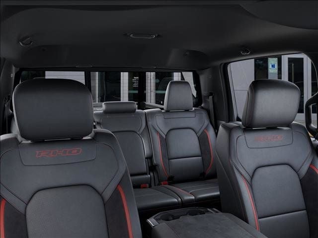THIS VEHICLE COMES WITH THE FOLLOWING FEATURES AND OPTIONS : Quick Order Package 22Y RHO, RHO Level 1 Equipment Group (12-Way/1-Way Trailer Connector, 14.4 Touchscreen Display, 240 Amp Alternator, 4G LTE Wi-Fi Hot Spot, Connected Travel and Traffic Services, Connectivity - US/Canada, Disassociated Touchscreen Display, Driver Power Seat Back Massage, Driver Seat Memory, Driver/Passenger Wrapped Assist Handles, Drowsy Driver Detection, Dual Wireless Charging Pad, Evasive Steer Assist, Exterior Mirrors with Memory, Front Passenger Interactive Display, Front Passenger Power Seat Back Massage, Full Length Premium Upgraded Floor Console, GPS Navigation, Hands-Free Active Driving Assist System, Harman/Kardon 19 Speaker Premium Sound, HD Radio, Heads-Up Display, Heated Second Row Seats, Integrated Center Stack Radio, Integrated Voice Command with Bluetooth®, Intersection Collision Assist System, Leather/Carbon Flat-Bottom Steering Wheel, LED CHMSL Lamp, Luxury Front Door Trim Panel, Power Adjustable Pedals with Memory, Power Tailgate, Premium Wrapped Instrument Panel Bezel, Radio: Uconnect 5 Nav with 14.4 Display, Radio/Driver Seat/Mirrors/Pedals Memory, Rain Sensitive Windshield Wipers, Real Carbon Fiber Interior Accents, Rear 60/40 Folding Split Recline Seat, SiriusXM Radio Service, Smartphone as a Key Capable, Surround View Camera System, Traffic Sign Recognition, USB Host Flip, Ventilated Front Seats, and Ventilated Rear Seats), 10 Speakers, 3.92 Rear Axle Ratio, 4-Wheel Disc Brakes, ABS brakes, Adaptive suspension, Adjustable pedals, Air Conditioning, Alloy wheels, AM/FM radio, Apple CarPlay/Android Auto, Auto High-beam Headlights, Auto Power-Folding Mirrors, Auto-dimming door mirrors, Auto-Dimming Exterior Driver Mirror, Auto-dimming Rear-View mirror, Automatic temperature control, Brake assist, Compass, Delay-off headlights, Driver door bin, Driver vanity mirror, Dual front impact airbags, Dual front side impact airbags, Electronic Stability Control, Exterior Mirrors Courtesy Lamps, Exterior Mirrors with Heating Element, Exterior Mirrors with Supplemental Signals, Exterior Parking Camera Rear, Flareside Box, Front anti-roll bar, Front Bucket Seats, Front Center Armrest w/Storage, Front dual zone A/C, Front fog lights, Front License Plate Bracket, Front reading lights, Front wheel independent suspension, Fully automatic headlights, Garage door transmitter, Heated door mirrors, Heated front seats, Heated steering wheel, Illuminated entry, Leather Shift Knob, Leather steering wheel, Leather Trimmed Bucket Seats, Low tire pressure warning, MOPAR RHO Exterior Graphics, MOPAR RHO Hood Graphics, Navigation System, Occupant sensing airbag, Outside temperature display, Overhead airbag, Overhead console, Panic alarm, Passenger door bin, Passenger vanity mirror, Power door mirrors, Power driver seat, Power passenger seat, Power steering, Power windows, Radio data system, Radio: Uconnect 5 Navigation with 12.0 Display, Rear reading lights, Rear seat center armrest, Rear step bumper, Rear window defroster, Red Interior Accents, Remote keyless entry, Security system, Speed control, Split folding rear seat, Sport steering wheel, Steering wheel mounted audio controls, Tachometer, Telescoping steering wheel, Tilt steering wheel, Traction control, Trip computer, Turn signal indicator mirrors, Variably intermittent wipers, Voltmeter, and Wheels: 18 x 9 Black Paint/Polish Aluminum.
