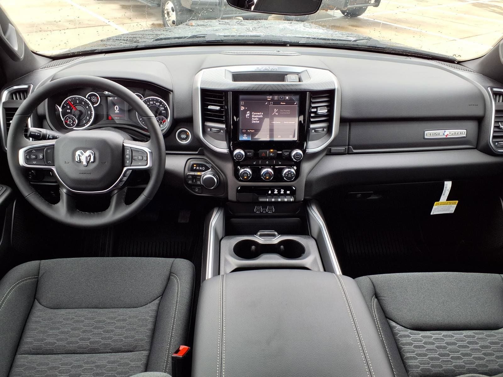 THIS VEHICLE COMES WITH THE FOLLOWING FEATURES AND OPTIONS : Big Horn Level 1 Equipment Group (115V Auxiliary Power Outlet, 2nd Row in Floor Storage Bins, 3 Rear Seat Head Restraints, 4 Way Front Headrests, 400W Inverter, Auto Power-Folding Mirrors, Auto-Dimming Exterior Driver Mirror, Auto-Dimming Rear-View Mirror, Black Exterior Mirrors, Black Premium Power Mirrors, Body Color Fender Flares, Bucket Seats, Center Console Parts Module, Convex Wide-Angle Exterior Mirror Insert, Deluxe Cloth Bucket Seats, Exterior Mirrors Courtesy Lamps, Exterior Mirrors with Heating Element, Exterior Mirrors with Supplemental Signals, Front Seat Back Map Pockets, Full Length Floor Console, Glove Box Lamp, Heated Front Seats, Heated Steering Wheel, Leather Wrapped Steering Wheel, Manual Adjust 4-Way Front Passenger Seat, Power 2-Way Driver Lumbar Adjust, Power Adjust 8-Way Driver Seat, Power Adjustable Pedals, Rear 60/40 Folding Seat, Rear Center Armrest, Rear Dome with on/Off Switch Lamp, Rear Power Sliding Window, Rear Window Defroster, SiriusXM Radio Service, SiriusXM Satellite Radio, Steering Wheel Mounted Audio Controls, Sun Visors with Illuminated Vanity Mirrors, and Universal Garage Door Opener), Night Edition (Accent Color Door Handles, Accent Color Premium Power Mirrors, Accent Color Tailgate Handle, Anti-Spin Differential Rear Axle, Black Exterior Truck Badging, Black Headlamp Bezels, Black Interior Accents, Black Painted Exterior Mirrors Caps, Black Tail Lamp Bezels, Body Color Front Bumper, Body Color Rear Bumper with Step Pads, Dual Exhaust with Black Tips, Grille Black Surround Black Mesh, RAM Grille Badge - Black, and Wheels: 20 x 9.0 Aluminum Painted Clad), Quick Order Package 27R Lone Star (Lone Star Badge), 33 Gallon Fuel Tank, 4-Wheel Disc Brakes, 48V Belt Starter Generator, 4G LTE Wi-Fi Hot Spot, 6 Speakers, ABS brakes, Air Conditioning, Alloy wheels, AM/FM radio, Apple CarPlay, Apple CarPlay/Android Auto, Auto High-beam Headlights, Brake assist, Bumpers: chrome, Cloth Bucket Seats, Compass, Connectivity - US/Canada, Delay-off headlights, Driver door bin, Dual front impact airbags, Dual front side impact airbags, Electronic Stability Control, Front anti-roll bar, Front Bucket Seats, Front Center Armrest w/Storage, Front fog lights, Front License Plate Bracket, Front reading lights, Front wheel independent suspension, Fully automatic headlights, Global Telematics Box Module, Google Android Auto, GPS Antenna Input, Heated door mirrors, Illuminated entry, Integrated Center Stack Radio, Integrated Voice Command with Bluetooth®, Low tire pressure warning, Manual Adjust 4-Way Driver Seat, Manual Folding Exterior Mirrors, MOPAR Front and Rear Rubber Floor Mats, Occupant sensing airbag, Outside temperature display, Overhead airbag, Overhead console, Panic alarm, ParkView Rear Back-Up Camera, Passenger door bin, Passenger vanity mirror, Power door mirrors, Power steering, Power windows, Radio data system, Radio: Uconnect 5 W with 8.4 Display, RAM Grille Badge - Chrome, Rear anti-roll bar, Rear step bumper, Remote keyless entry, Speed control, Supplier Part Tracking (J-1), Tachometer, Telescoping steering wheel, Tilt steering wheel, Traction control, Trip computer, USB Host Flip, Variably intermittent wipers, and Voltmeter. Price includes: $3500 - 2026 National Retail Bonus Cash . Exp. 03/31/2026