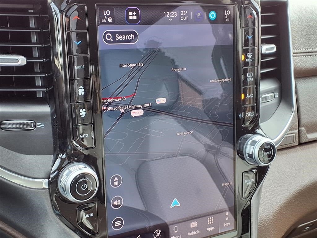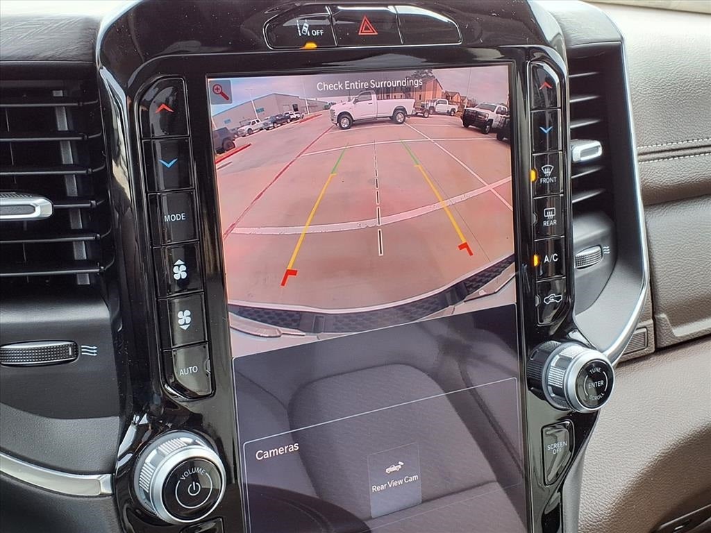 THIS VEHICLE COMES WITH THE FOLLOWING FEATURES AND OPTIONS : Bed Utility Group (Exterior 115V AC Outlet, MOPAR 4 Adjustable Cargo Tie-Down Hooks, and MOPAR Spray in Bedliner), Laramie Level 1 Equipment Group (Rain Sensitive Windshield Wipers and Remote Tailgate Release), Laramie Southwest Edition (Accent Color Premium Power Mirrors, Auto Power-Folding Mirrors, Auto-Dimming Exterior Driver Mirror, Black Painted Exterior Mirrors Caps, Body Color Front Bumper, Body Color Rear Bumper with Step Pads, Convex Wide-Angle Exterior Mirror Insert, Dome Dual LED Reading Lamp, Dual-Pane Panoramic Sunroof, Exterior Mirrors Courtesy Lamps, Exterior Mirrors with Heating Element, Exterior Mirrors with Memory, Exterior Mirrors with Supplemental Signals, Grille Surround 3 Body Color Tex 4 Chrome, LED Dome/Reading Lamp, MOPAR Lockable Console Storage, Power Deployable Running Boards, RAM Grille Badge - Chrome, Tow Hooks, and Trailer Brake Control), Quick Order Package 27H Laramie, 10 Speakers, 4-Wheel Disc Brakes, 4G LTE Wi-Fi Hot Spot, ABS brakes, Active Noise Control System, Air Conditioning, Alloy wheels, AM/FM radio: SiriusXM with 360L, Apple CarPlay/Android Auto, Audio memory, Auto High-beam Headlights, Auto-dimming door mirrors, Auto-dimming Rear-View mirror, Automatic temperature control, Brake assist, Bumpers: chrome, Chrome Exterior Mirrors, Compass, Connected Travel and Traffic Services, Connectivity - US/Canada, Delay-off headlights, Driver door bin, Driver vanity mirror, Dual front impact airbags, Dual front side impact airbags, Electronic Stability Control, Front anti-roll bar, Front Bucket Seats, Front Center Armrest w/Storage, Front dual zone A/C, Front fog lights, Front License Plate Bracket, Front reading lights, Front wheel independent suspension, Fully automatic headlights, Garage door transmitter, GPS Navigation, Heated door mirrors, Heated front seats, Heated rear seats, Heated steering wheel, Illuminated entry, Integrated Center Stack Radio, Integrated Voice Command with Bluetooth®, Leather steering wheel, Leather Trimmed Bucket Seats, Low tire pressure warning, Manufacturer's Statement of Origin, Memory seat, MOPAR Front and Rear Rubber Floor Mats, MyFlexCare Service Plan, Navigation System, Occupant sensing airbag, Off-Road Information Pages, Outside temperature display, Overhead airbag, Overhead console, Panic alarm, ParkView Rear Back-Up Camera, Passenger door bin, Passenger vanity mirror, Power door mirrors, Power driver seat, Power passenger seat, Power steering, Power windows, Radio data system, Radio: Uconnect 5 Navigation with 12.0 Display, Rear anti-roll bar, Rear reading lights, Rear seat center armrest, Rear step bumper, Remote keyless entry, Security system, SiriusXM Radio Service, SiriusXM with 360L, Speed control, Split folding rear seat, Steering wheel mounted audio controls, Tachometer, Telescoping steering wheel, Tilt steering wheel, Traction control, Trip computer, Turn signal indicator mirrors, USB Host Flip, Variably intermittent wipers, Ventilated front seats, Voltmeter, and Wheels: 20 x 9 Premium Paint/Polish.