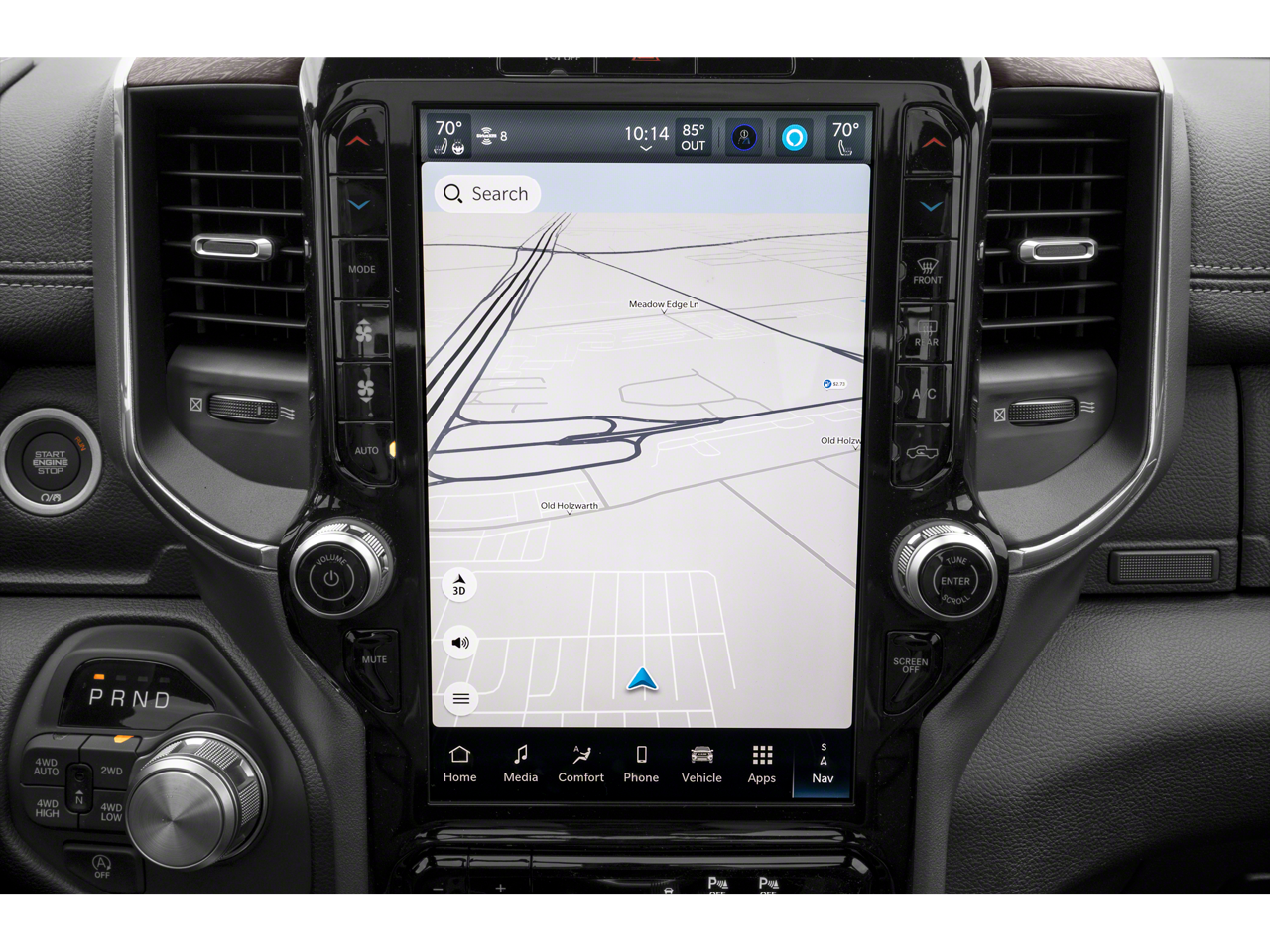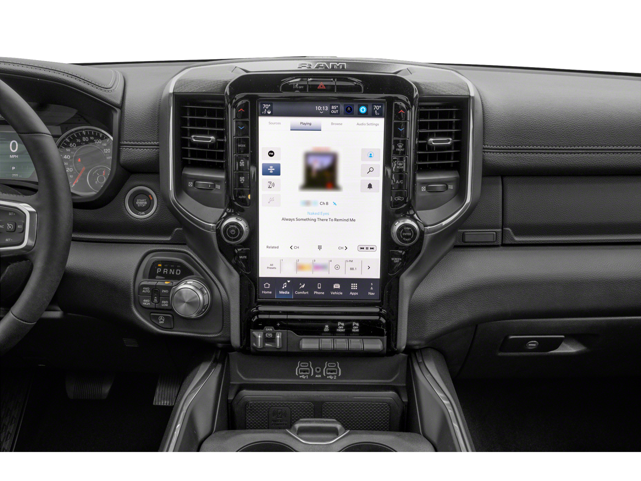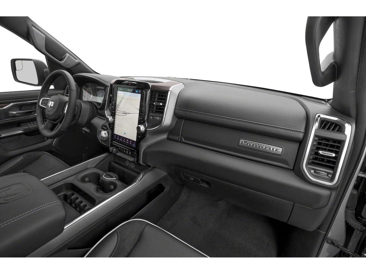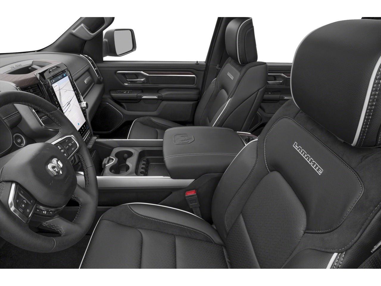 THIS VEHICLE COMES WITH THE FOLLOWING FEATURES AND OPTIONS : Bed Utility Group (Exterior 115V AC Outlet, MOPAR 4 Adjustable Cargo Tie-Down Hooks, and MOPAR Spray in Bedliner), Laramie Level 1 Equipment Group (Rain Sensitive Windshield Wipers and Remote Tailgate Release), Laramie Southwest Edition (Accent Color Premium Power Mirrors, Auto Power-Folding Mirrors, Auto-Dimming Exterior Driver Mirror, Black Painted Exterior Mirrors Caps, Body Color Front Bumper, Body Color Rear Bumper with Step Pads, Convex Wide-Angle Exterior Mirror Insert, Dome Dual LED Reading Lamp, Dual-Pane Panoramic Sunroof, Exterior Mirrors Courtesy Lamps, Exterior Mirrors with Heating Element, Exterior Mirrors with Memory, Exterior Mirrors with Supplemental Signals, Grille Surround 3 Body Color Tex 4 Chrome, LED Dome/Reading Lamp, MOPAR Lockable Console Storage, Power Deployable Running Boards, RAM Grille Badge - Chrome, Tow Hooks, and Trailer Brake Control), Quick Order Package 27H Laramie, 10 Speakers, 4-Wheel Disc Brakes, 4G LTE Wi-Fi Hot Spot, ABS brakes, Active Noise Control System, Adjustable pedals, Air Conditioning, Alloy wheels, AM/FM radio: SiriusXM with 360L, Apple CarPlay/Android Auto, Audio memory, Auto High-beam Headlights, Auto-dimming door mirrors, Auto-dimming Rear-View mirror, Automatic temperature control, Brake assist, Bumpers: chrome, Chrome Exterior Mirrors, Compass, Connected Travel and Traffic Services, Connectivity - US/Canada, Delay-off headlights, Driver door bin, Driver vanity mirror, Dual front impact airbags, Dual front side impact airbags, Electronic Stability Control, Front anti-roll bar, Front Bucket Seats, Front Center Armrest w/Storage, Front dual zone A/C, Front fog lights, Front License Plate Bracket, Front reading lights, Front wheel independent suspension, Fully automatic headlights, Garage door transmitter, GPS Navigation, Heated door mirrors, Heated front seats, Heated rear seats, Heated steering wheel, Illuminated entry, Integrated Center Stack Radio, Integrated Voice Command with Bluetooth®, Leather steering wheel, Leather Trimmed Bucket Seats, Low tire pressure warning, Manufacturer's Statement of Origin, Memory seat, MOPAR Front and Rear Rubber Floor Mats, MyFlexCare Service Plan, Navigation System, Occupant sensing airbag, Off-Road Information Pages, Outside temperature display, Overhead airbag, Overhead console, Panic alarm, ParkView Rear Back-Up Camera, Passenger door bin, Passenger vanity mirror, Pedal memory, Power door mirrors, Power driver seat, Power passenger seat, Power steering, Power windows, Radio data system, Radio: Uconnect 5 Navigation with 12.0 Display, Rear anti-roll bar, Rear reading lights, Rear seat center armrest, Rear step bumper, Remote keyless entry, Security system, SiriusXM Radio Service, SiriusXM with 360L, Speed control, Split folding rear seat, Steering wheel mounted audio controls, Tachometer, Telescoping steering wheel, Tilt steering wheel, Traction control, Trip computer, Turn signal indicator mirrors, USB Host Flip, Variably intermittent wipers, Ventilated front seats, Voltmeter, and Wheels: 20 x 9 Premium Paint/Polish.