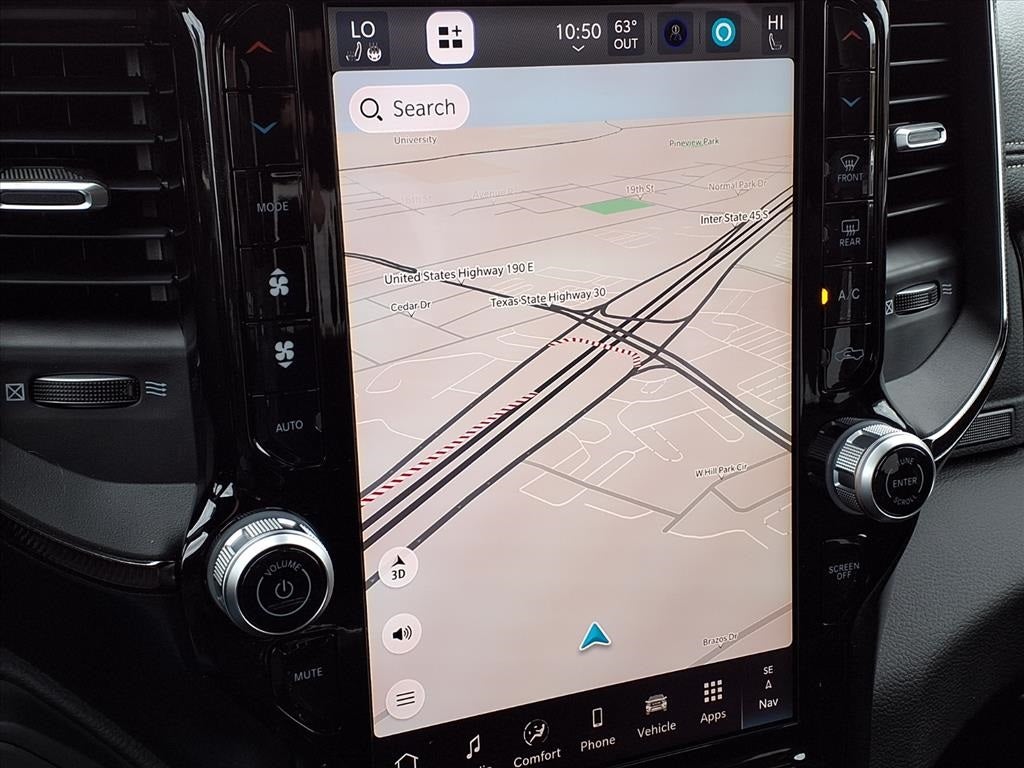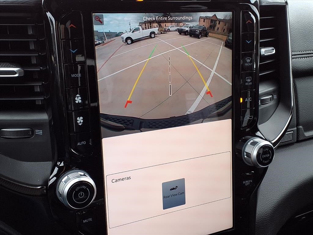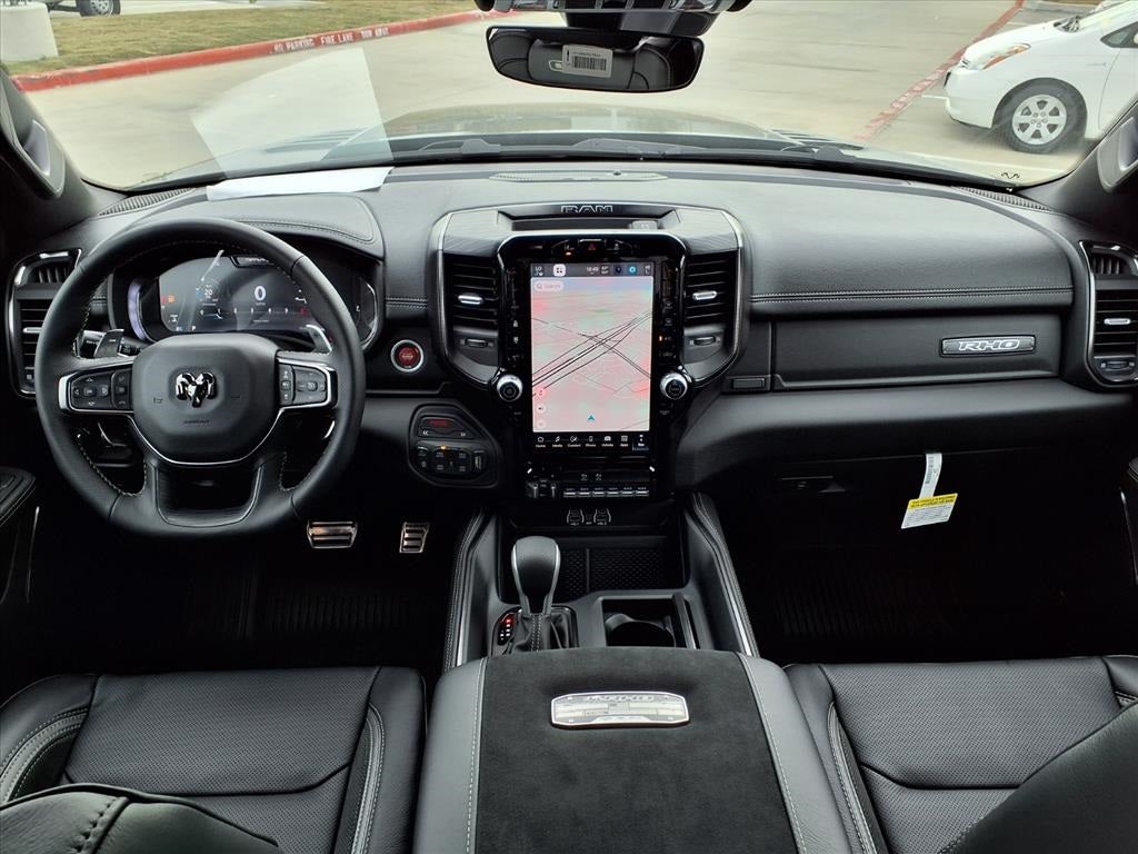 THIS VEHICLE COMES WITH THE FOLLOWING FEATURES AND OPTIONS : Bed Utility Group (Exterior 115V AC Outlet, MOPAR 4 Adjustable Cargo Tie-Down Hooks, and MOPAR Deployable Bed Step), Quick Order Package 22Y RHO, 10 Speakers, 3.92 Rear Axle Ratio, 4-Wheel Disc Brakes, 4G LTE Wi-Fi Hot Spot, ABS brakes, Adaptive suspension, Adjustable pedals, Air Conditioning, Alloy wheels, AM/FM radio, Apple CarPlay/Android Auto, Auto High-beam Headlights, Auto Power-Folding Mirrors, Auto-dimming door mirrors, Auto-Dimming Exterior Driver Mirror, Auto-dimming Rear-View mirror, Automatic temperature control, Brake assist, Compass, Connected Travel and Traffic Services, Connectivity - US/Canada, Delay-off headlights, Disassociated Touchscreen Display, Driver door bin, Driver vanity mirror, Dual front impact airbags, Dual front side impact airbags, Electronic Stability Control, Exterior Mirrors Courtesy Lamps, Exterior Mirrors with Heating Element, Exterior Mirrors with Supplemental Signals, Exterior Parking Camera Rear, Flareside Box, Front anti-roll bar, Front Bucket Seats, Front Center Armrest w/Storage, Front dual zone A/C, Front fog lights, Front License Plate Bracket, Front reading lights, Front wheel independent suspension, Fully automatic headlights, Garage door transmitter, GPS Navigation, HD Radio, Heated door mirrors, Heated front seats, Heated steering wheel, Illuminated entry, Integrated Center Stack Radio, Integrated Voice Command with Bluetooth®, Leather Shift Knob, Leather steering wheel, Leather Trimmed Bucket Seats, Low tire pressure warning, Manufacturer's Statement of Origin, MyFlexCare Service Plan, Navigation System, Occupant sensing airbag, Outside temperature display, Overhead airbag, Overhead console, Panic alarm, Passenger door bin, Passenger vanity mirror, Power door mirrors, Power driver seat, Power passenger seat, Power steering, Power windows, Radio data system, Radio: Uconnect 5 Navigation with 12.0 Display, Rear reading lights, Rear seat center armrest, Rear step bumper, Rear window defroster, Remote keyless entry, Security system, SiriusXM Radio Service, Speed control, Split folding rear seat, Sport steering wheel, Steering wheel mounted audio controls, Tachometer, Telescoping steering wheel, Tilt steering wheel, Traction control, Trip computer, Turn signal indicator mirrors, USB Host Flip, Variably intermittent wipers, Voltmeter, and Wheels: 18 x 9 Black Paint/Polish Aluminum.