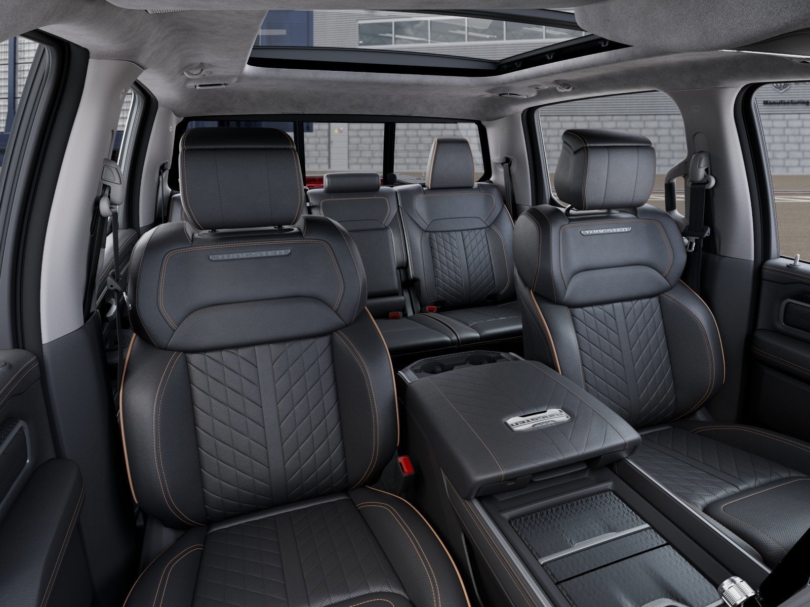 THIS VEHICLE COMES WITH THE FOLLOWING FEATURES AND OPTIONS : Bed Utility Group (Exterior 115V AC Outlet, MOPAR 4 Adjustable Cargo Tie-Down Hooks, and Truck Bed Cargo Divider), Quick Order Package 22V Tungsten, Trailer Tow Group (Trailer Brake Control, Trailer Light Check, Trailer Reverse Steering Control, and Trailer Tire Pressure Monitoring System), 12-Way/1-Way Trailer Connector, 3.92 Rear Axle Ratio, 4-Wheel Disc Brakes, ABS brakes, Adjustable pedals, Air Conditioning, Alloy wheels, AM/FM radio, Apple CarPlay/Android Auto, Audio memory, Auto High-beam Headlights, Auto Power-Folding Mirrors, Auto-dimming door mirrors, Auto-Dimming Exterior Driver Mirror, Auto-dimming Rear-View mirror, Auto-leveling suspension, Automatic temperature control, Bodyside moldings, Brake assist, Bumpers: body-color, Chrome Exterior Mirrors, Compass, Delay-off headlights, Driver door bin, Driver vanity mirror, Dual front impact airbags, Dual front side impact airbags, Electronic Stability Control, Exterior Mirrors Courtesy Lamps, Exterior Mirrors with Heating Element, Exterior Mirrors with Memory, Exterior Mirrors with Supplemental Signals, Exterior Parking Camera Rear, Front anti-roll bar, Front Bucket Seats, Front Center Armrest w/Storage, Front dual zone A/C, Front fog lights, Front License Plate Bracket, Front reading lights, Front wheel independent suspension, Fully automatic headlights, Garage door transmitter, Heads-Up Display, Heated door mirrors, Heated front seats, Heated rear seats, Heated steering wheel, Illuminated entry, Leather steering wheel, Low tire pressure warning, Memory seat, MyFlexCare Service Plan, Navigation System, Occupant sensing airbag, Outside temperature display, Overhead airbag, Overhead console, Panic alarm, Passenger door bin, Passenger vanity mirror, Pedal memory, Power adjustable front head restraints, Power door mirrors, Power driver seat, Power moonroof, Power passenger seat, Power steering, Power windows, Premium Leather Bucket Seats, Radio data system, Radio: Uconnect 5 Nav with 14.4 Display, Rain sensing wipers, Rear anti-roll bar, Rear reading lights, Rear seat center armrest, Rear step bumper, Rear window defroster, Remote keyless entry, Security system, Speed control, Split folding rear seat, Steering wheel mounted audio controls, Tachometer, Telescoping steering wheel, Tilt steering wheel, Traction control, Trip computer, Turn signal indicator mirrors, Variably intermittent wipers, Ventilated front seats, Ventilated rear seats, Voltmeter, and Wheels: 22 x 9 Polish/Painted with Inserts.