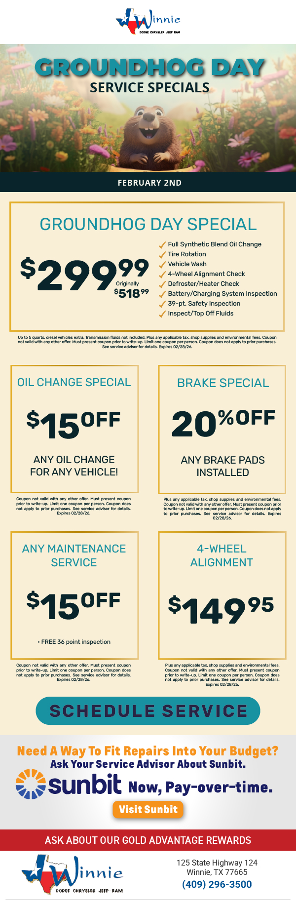 Groundhog Day Service Specials