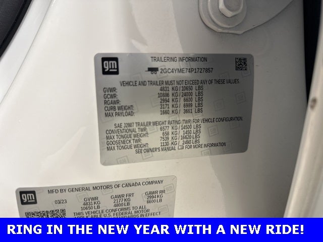 THIS VEHICLE IS EQUIPPED THE FOLLOWING FEATURES AND OPTIONS: Custom Convenience Package (Electric Rear-Window Defogger, EZ Lift Power Lock & Release Tailgate, Integrated Trailer Brake Controller, LED Cargo Area Lighting, and Remote Vehicle Starter System), Custom Value Package (Auto-Dimming Inside Rear-View Mirror and Power-Adjustable Vertical Trailering Mirrors), Infotainment Package (Chevrolet Connected Access Capable, Compass, OnStar & Chevrolet Connected Services Capable, SiriusXM Radio, and Wi-Fi Hotspot Capable), Preferred Equipment Group 1CX (170 Amp Alternator, 2-Speed Electronic Shift Transfer Case, 3.5 Diagonal Monochromatic Display DIC, Black Mirror Caps, Bluetooth® For Phone, Body Color Front Grille, Color-Keyed Carpeting Floor Covering, Deep-Tinted Glass, Electronic Cruise Control w/Set & Resume Speed, Front Rubberized Vinyl Floor Mats, Heated Vertical Trailering Mirrors, Locking Tailgate, Manual Tailgate Function w/No EZ Lift, Manual Tilt-Wheel Steering Column, Power Door Locks, Power Front Windows w/Driver Express Up/Down, Power Front Windows w/Passenger Express Down, Power Rear Windows w/Express Down, Rear 60/40 Folding Bench Seat (Folds Up), Rear Rubberized Vinyl Floor Mats, Remote Keyless Entry, and Standard Tailgate), Safety Confidence Package (4.2 Diagonal Color Display Driver Info Center, Automatic Emergency Braking, Forward Collision Alert, and Steering Wheel Audio Controls), Suspension Package, 10-Way Power Driver Seat Adjuster w/Lumbar, 120-Volt Bed Mounted Power Outlet, 120-Volt Instrument Panel Power Outlet, 3 Years of Remote Access, 3.73 Rear Axle Ratio, 4-Wheel Disc Brakes, 6 Speakers, 6-Speaker Audio System, 720 Cold-Cranking Amps Heavy-Duty Battery, ABS brakes, Air Conditioning, Alloy wheels, AM/FM radio, Apple CarPlay/Android Auto, Brake assist, Cloth Seat Trim, Delay-off headlights, Driver door bin, Dual front impact airbags, Dual front side impact airbags, Electronic Stability Control, Front 40/20/40 Split-Bench Seats, Front anti-roll bar, Front Center Armrest w/Storage, Front License Plate Kit, Front reading lights, Front wheel independent suspension, Fully automatic headlights, Heated door mirrors, Illuminated entry, Low tire pressure warning, Occupant sensing airbag, Outside temperature display, Overhead airbag, Overhead console, Panic alarm, Passenger door bin, Passenger vanity mirror, Power door mirrors, Power steering, Power windows, Premium audio system: Chevrolet Infotainment 3, Radio: Chevrolet Infotainment 3 System, Rear reading lights, Rear step bumper, Remote keyless entry, Speed control, Split folding rear seat, Tachometer, Tilt steering wheel, Traction control, Trip computer, Turn signal indicator mirrors, Upfitter Switch Kit (5), Variably intermittent wipers, Voltmeter, and Wheels: 20 10-Spoke Machined Aluminum.